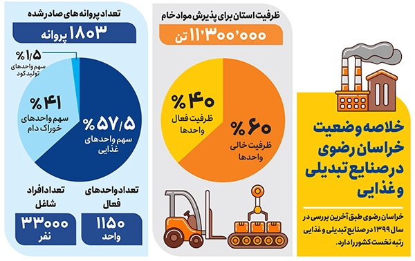 تولید فقط با ۴۰ درصد توان | خراسان رضوی، قطب صنایع غذایی کشور با کمتر از ۴۰ درصد ظرفیت اسمی خود فعالیت میکند